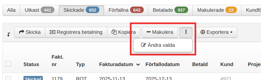 Under "Fakturering -> Fakturor" så kan man nu uppdatera konto samt resultatenhet på flera fakturor på en gång.