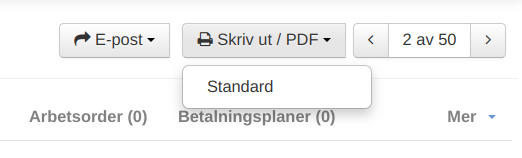 Det är nu möjligt att skicka e-post och PDF direkt från ett projekt, på samma sätt som det redan fungerar för arbetsorder. Mallar konfigureras under "Inställningar → Projekt → E-post / PDF" och därefter finns val att skicka E-post, skriva ut eller exportera PDF från projektets "Översikt".